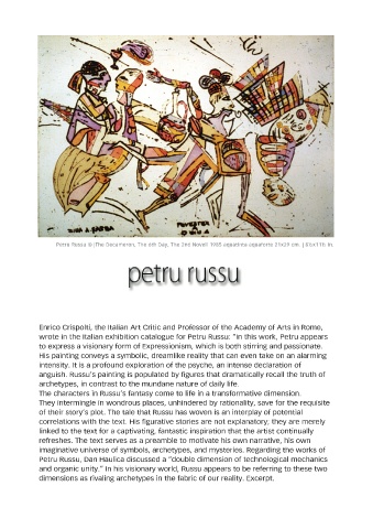 anguish. Russu’s painting is populated by figures that dramatically recall the truth of