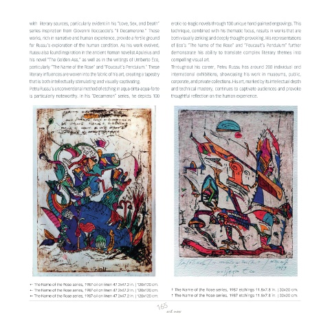 with literary sources, particularly evident in his “Love, Sex, and Death” erotic-to-tragic novels through 100 unique hand-painted engravings. This