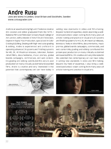 (DI) colorist and editor graduated from the nFTS / Beyond his field of expertise, Andre also bring a well-