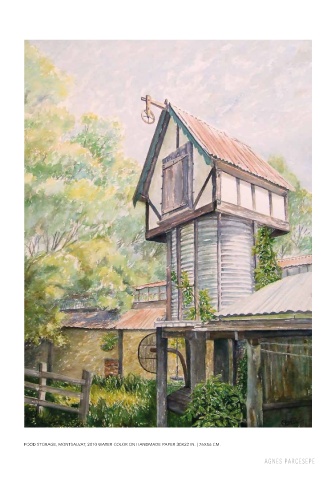 FOOD STORAGE, MONTSALVAT, 2010 WATER COLOR ON HANDMADE PAPER 30X22 IN. | 76X56 CM. AGNES PARCESEPE