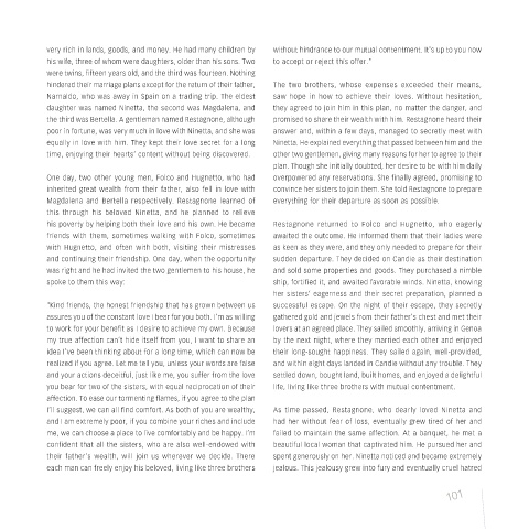 inherited great wealth from their father, also fell in love with convince her sisters to join them. She told Restagnone to prepare