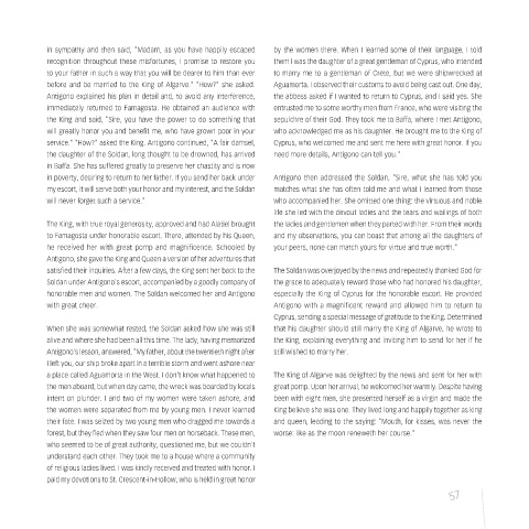 honorable men and women. The Soldan welcomed her and Antigono especially the King of Cyprus for the honorable escort. He provided