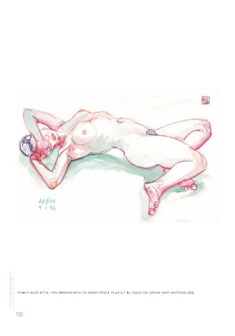 TOP CONTEMPOR ARY ARTISTS FEMALE NUDE #5710, 1996 DRAWING WITH COLOURED PENCIL 19.6X13.7 IN. | 50X35 CM. (SERIAL NUDE WATERCOLORS) 100