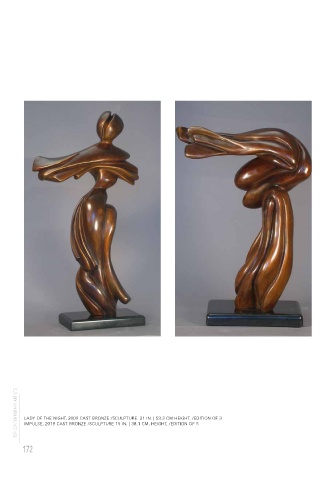TOP CONTEMPOR ARY ARTISTS LADY OF THE NIGHT, 2009 CAST BRONZE /SCULPTURE 21 IN. | 53.3 CM HEIGHT. /EDITION OF 3 IMPULSE, 2019 CAST BRONZE /SCULPTURE 15 IN. | 38.1 CM. HEIGHT, /EDITION OF 5 172