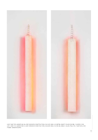 LIGHT AND THE LADDER (NO. 4), 2021 WOODEN CONSTRUCTION, COLOUR, WAX, 3-D METAL OBJECT 45.6X3.5X2 IN. | 116X9X5.2 CM.