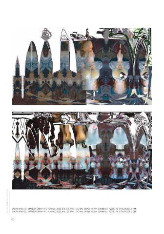 TOP CONTEMPOR ARY ARTISTS SNOW AND ICE TRANSOFORMATIVE TOTEMS, 2022 BREEDERART: DIGITAL DRAWING ON SOMERSET 42X80 IN. | 106.8X203.2 CM. SNOW AND ICE TRANSOFORMATIVE TOTEMS, 2022 BREEDERART: DIGITAL DRAWING ON SOMERSET 42X80 IN. | 106.8X203.2 CM. 46
