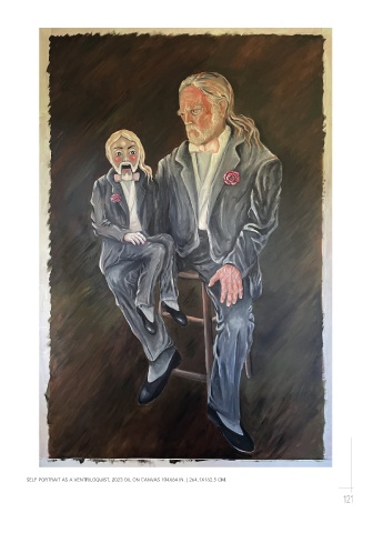 SELF PORTRAIT AS A VENTRILOQUIST, 2023 OIL ON CANVAS 104X64 IN. | 264.1X162.5 CM. 121