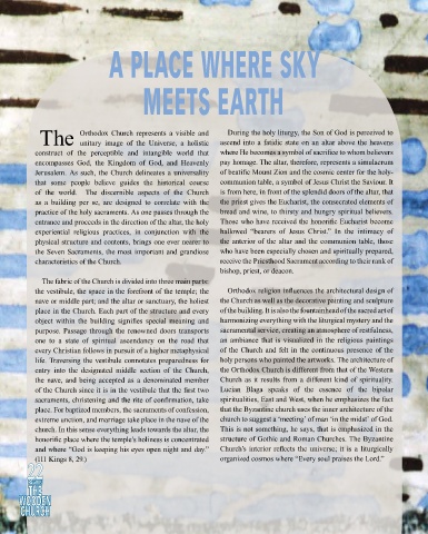 Orthodox Church represents a visible and During the holy liturgy, the Son of God is perceived to