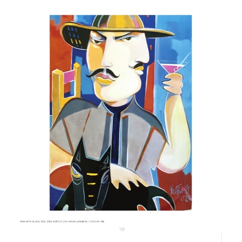 MAN WITH BLACK DOG, 2002 ACRYLIC ON CANVAS 60X48 IN. | 152X121 CM. 149
