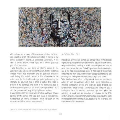 I was fortunate to see many of Klimt’s works at the paint onto canvas. Jackson Pollock’s greatness lies in developing