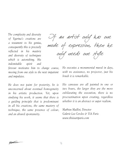 in his artistic production. Yet, upon exhilarating the execution, there is no