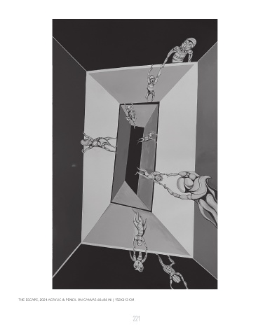 THE ESCAPE, 2021 ACRYLIC & PENCIL ON CANVAS 60×84 IN. | 152X213 CM. 221