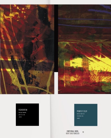 ROMANCE MIXED MEDIA 46X103 CM 2003 REGENERATION POWER OF COLOR MIXED MEDIA MIXED MEDIA 69X152 CM 92X150 CM 2003 2003 EMOTIONAL SWIRL EMOTIONAL SWIRL 18 19 MARY ANNE WARDACH MARY ANNE WARDACH